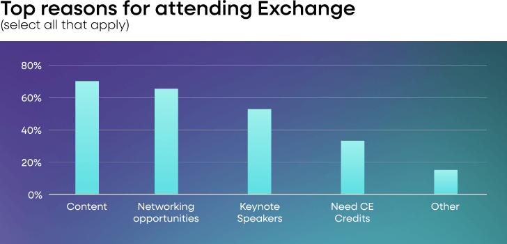 Advisors indicated the top reasons they attended Exchange were for the content and the networking. In 2025, the Exchange conference offered more than 44 unique sessions that spanned macro insights, practice management, portfolio strategies, and finance-adjacent topics.